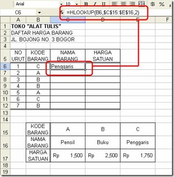 penulisanya : =HLOOKUP(lookup_value,table_array,row_index_num,…)